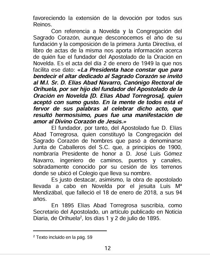 La Asociación Pro-Música Amadeo L. Sala rinde homenaje a D. Amadeo Sala Cola, Presidente de Honor de la Asociación, autor del libro, “La Devoción al Sagrado Corazón de Jesús en Novelda”, entre otros ya publicados sobre Santa María Magdalena, Órgano de la Iglesia de San Pedro de Novelda, Jorge Juan y Santacilia…etc. La Devoción al Sagrado Corazón de Jesús en Novelda, ya en su segunda edición, de la que se publica un extracto, describe, con excelente documentación, lo que ha sido la devoción del Sagrado Corazón de Jesús en la ciudad de Novelda y, especialmente, en el seno de la familia de Amadeo Sala Pina y Ana Cola Castelló.